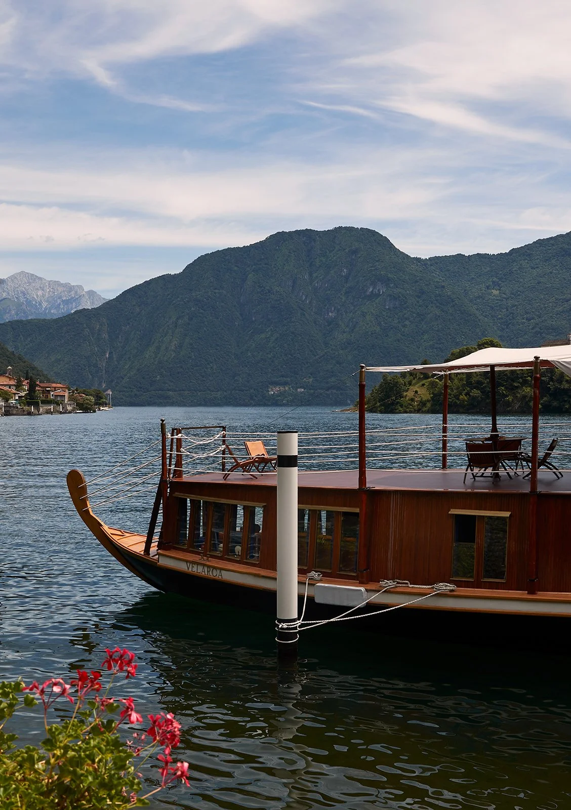 One of the most interesting museums around the lake is La Velarca, a custom-made houseboat designed by the Milanese architecture firm BBPR in 1959, now restored to its original mooring in Ossuccio. The former floating home represents a fusion of modernist design and traditional craftsmanship. Initially, it was commissioned by Fiammetta and Emilio Norsa as a summer retreat.